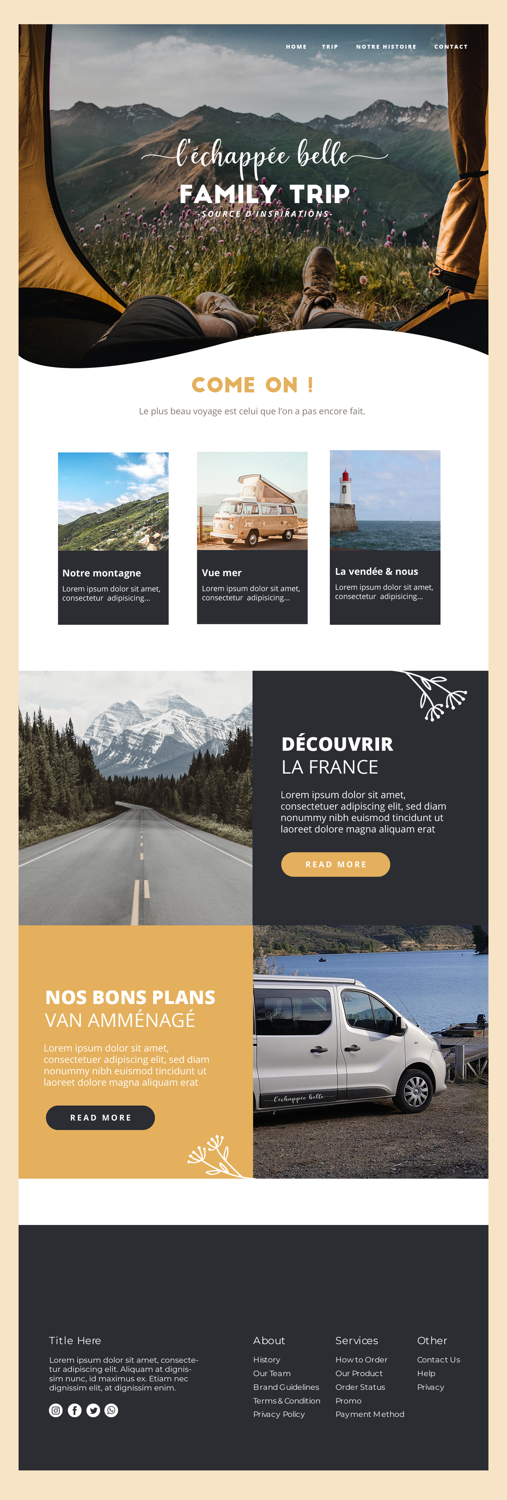 Art de vivre très tendance ces derniers temps, le Road trip, aussi intemporel qu’incroyable séduit de plus en plus de voyageurs. Libre, à la conquête des grands espaces, en mode aventurier… il y a comme un vent de liberté qui souffle dans la toile de tente qui se déploie pour faire un lit. À travers le logo, j’ai voulu montrer que le voyage en van est vraiment un état d’esprit qui fait rêver.